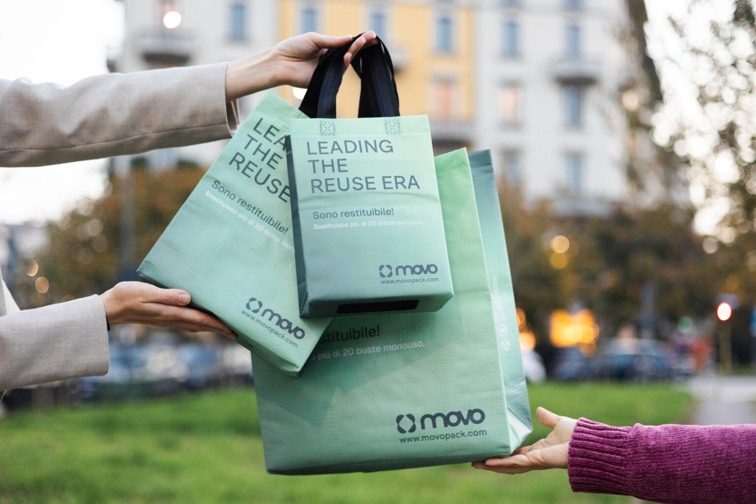 Many reusable packaging systems in Europe rely on generic bags printed with the supplier’s identity. Movo flips the dynamic: the packaging becomes part of the brand’s storytelling, not an interruption of it.